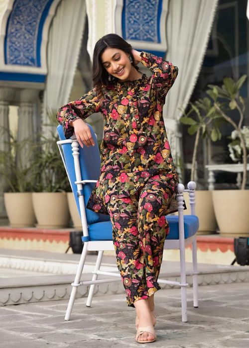 One Liner: Saajh Women Black Floral Printed Co-Ord Set